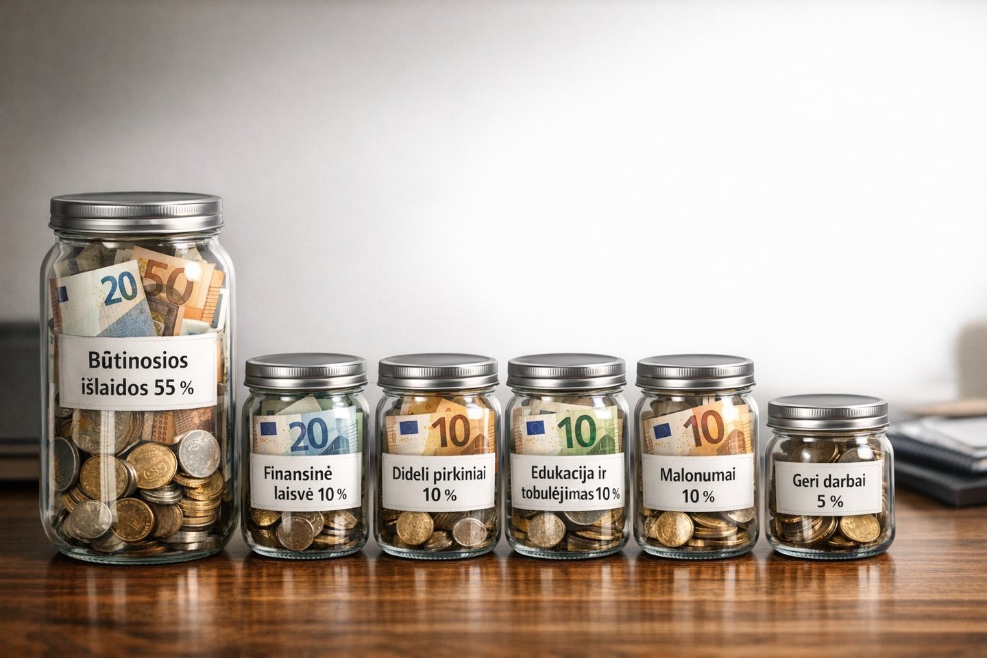 Jo idėja paprasta: vietoje vienos pinigų „krūvos“ pajamos paskirstomos į kelias paskirtis – tarsi į atskirus stiklainius.