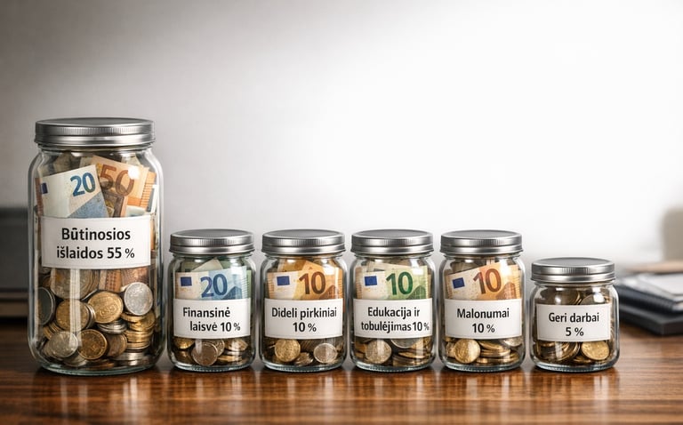 Tai sistema, kuri padeda paskirstyti pajamas į kelias aiškias kategorijas ir taip išlaikyti balansą tarp būtinų išlaidų, ateities tikslų ir gyvenimo kokybės.